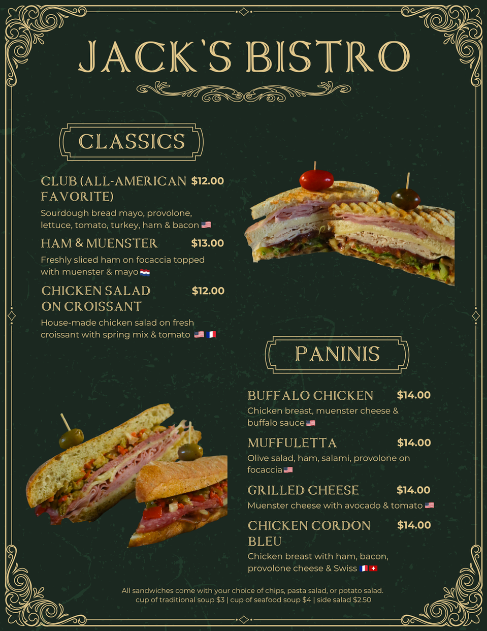Welcome to Jack’s Bistro! A family-owned café inspired by the meals, memories, and moments we’ve shared across Europe. From cozy cafés in Paris to sun-drenched lunches in Greece, our travels as a family sparked a love for simple, soulful food and now, we’re bringing those flavors home